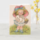 Vintageflicka med kanin påskkort kort