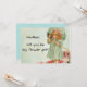 Det här antika kortet för blommflicka-förslag är så sött! Mot en tealbakgrund syns en målning av en liten flicka med blommor och en stor hatt. Hon matar en kattunge från en skål. Din lilla blommflicka kommer att älska det! All text är redigerbar. Njut av att presentera din framtida lilla blommflicka detta underbara vykort med teckningen av flicka med katt och blomsterträdgård vägg.