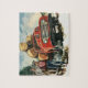Vintageillustration företag skogsindustridesign med två skogshuggare och en lastbil. Lastbilen transporterar trä, gammalväxande röda träd från skogen. Männen tar timmerstockarna till fabriken för att bli virke för byggprojekt.
