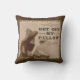 Vintagefotoet i sepia tonar av en Cowgirl i western hatt och att peka ett vapen som leker pokerinsida en salong. Med roligt ordstäv "få av mitt kudder".