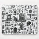 Olika produkter imprinted med en gammal gravyr 1800's av olika maskiner, verktyg och grejer.