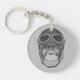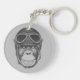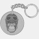 Denna design presenterar ett porträtt av en schimpans som ha på sig en vintagemotorcykelhjälm och goggle.