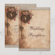 Bröllopsmottagning inbjudan mallar. Vackra, romantiska, personliga, skräddarsydda bröllopsmottagning endast inbjudningar med en elegant vintage-romans hjärtan, nycklar och lås shabby chic stil tema - en stilren, glamourös, tryckt bild av klassiska mässingshjärtan, utsmyckningar, virvlar, rosor och en nyckel som hänger i ett hjärtformigt lås - på en antikt utseende pappers effekt med höstblad och sofistikerad, snygg tryckt bild spets och band kant. Texten, teckensnittet och färgen på texten är helt anpassningsbara för att passa dina behov. Du kan också ändra storleken på texten och flytta placeringen av den om du vill. OBS: Alla element är tryckta - alla inbjudningar på Zazzle har platta tryck