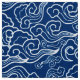 Tyg som mönstras med ett japanskt molnmönster för vintage, med en subtil, striated rå silkestruktur - djup koboltblått som betonas med vit