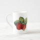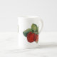 En nätt vintage bild av två jordgubbar som fästas till deras löv. En av jordgubbarna ripeneds och är fullständigt ett mörkare rött, med annan inte långt bakom.