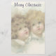 Helgdag för jul för vintageillustration avbildar den religiösa presentera två härliga Victorianänglar. Dessa änglalika cherubs är i ett fluffigt vitmoln som tittar upp in mot himmel.