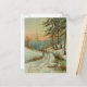Denna är en vintagevykortillustration av en snöig slinga in i en jultown.