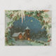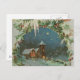 Denna är en vintagevykortillustration av en julTown med några barn ovanför den.
