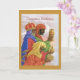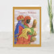 En vintagejulkortdesign presenterar den tre kloka manar som bär deras gåvor för att hedra bebiset Jesus på dagen av hans födelse. Bekläda av kortnågot att säga, "julvälsignelser" och meddelandeinsidan är: "Är maj under av det första jul med dig alltid.",