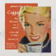 Vintageillustration drycker och förfriskningar bild med en glad kvinna som ler och dricker sin morgonkopp kaffe. Klassisk 50-tals retro kitsch!