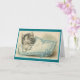 Victorianen/vintage noterar kortet. Den förtjusande svartvita kattungen på en blått och vit kudder! Det perfekta tillfällen noterar kortet för kattälskare!