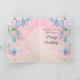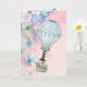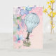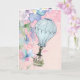 Födelsedaghälsningar med en vintage slösar luftballongresning i en rosa- och blåttblommigtbakgrund. Den inre texten är anpassadet.