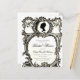 I denna budget för vintagen har svarta och vita inbjudningskort för möhippan en ornat rococo ram. I den övre delen har den en profil som kännetecknar ett 1800-tal ungt dam i silhuett. Tillfälle och namn är skrivna i elegantens kalligrafi. Ordalydelsen är också gammaldags: "Företagets njutning begärs.." Rekommenderas för en Möhippa av ett kristema.