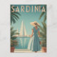 I elegant skildrar vintage affisch en kvinna som är klädd i klassisk 1950-talets mode och som rullar längs Sardiniens piskreskpromenad. Bakom henne flyter fredliga segelbåtar i turkohamnen vatten, inramad av öns hårda kusten. Konsten användor varm, nedsänkt ton och nostalgiskt struktur för att frammana charmen och den avslappnade elegansen i Medelhavslivet i mitten av århundradet. Perfekt för älskare i vintage stil, kustskönhet och tidlös resekonst.