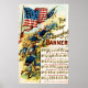 Star Spangled Banner 1908 - Vad ser ut som medlemmarna i Theodore Roosevelt Rough Riders, USA:s militärer stormar backe medan Old glory tittar på. Vintage. Förbättrad av Scenesfromthepast.net.