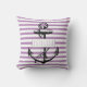 Svartankare på lavendelns lila och vit rand sjösommar utanför dekorativ kudde. Det här trendigets nautisk design visningar ett ankare för stil i vintage och ditt namn på ett vitt ram. Om du skulle vilja att du tog bort namn, ram eller och ankare så att du bara har en stripe.