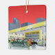 Vintage illustrerar affärsresor och transport-design med människor i en bilbil i fordon i station. Det finns bilmekaniker och gastekniker och station och ett automatreservat. Folk pumpar gas och sätter fast sina bilar vid Complete Car Service.