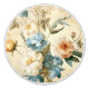 Utformning av blommigten i blues och gold, inklusive ro, daisy och olika blommor som tappas i nostalgia solljus.