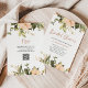 Inbjudningskort för möhippan har elegant Peach färgad vintage peony-blommor med gott om löv, grönt löv och grenar. De dekorerar en enkel vit bakgrund med modern skripttypografi. Kortets baksida har en plats för en skannerbar QR-kod så att gästerna lätt kan osa. Perfekten till vänner och familj i inbjudan för att fira den kommande bröllopen av den blivande bruden!