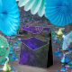 Dekorativ lila och guld vintage faux foil damask med accents of emerald grönt.