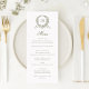 Vintage Elegant Menykort för lövlök Botaniskt andningspassage Grönt Bröllop. Traditionellt Bröllop-menymallkort