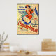 Vintage affisch gör reklam för ett Fransk cykelföretag. Bild av en kvinna som kör cykel och bär en tresidig färg-pennant. Från en originallitografi från 1800-talet (1891) av Jules Cheret. Alla Höger reserverade © 2013 Padre art.