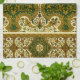Vintagens Grönt och Blommönstret Guld Kökshandduk