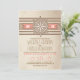 Koralltoner är gamla nautiska bröllopsinbjudningar med brunt nödlidande rand, bruds och brudgumms initialer och båthjul med rep.