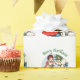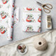 Charming vintage som täcker papper visning av en söt flicka i en strålande röd klänning bredvid en vit nalle och en dyrbar docka i baby, allt samlades under ett vackert prydt Julgran. Scenen är förbluffad med den känsla som fångar säsongens anda - God jul.