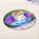 Pappert Underlägg med en orange och vit, randig kattunge. Kattens stora blå ögon står i en blå skål med rosa och lila blommor. En underbar gåva till kattälskare och viktorianska konstentusiaster!