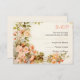 Vintagens romantiska målning av svarskort/svarskort för rosor bröllop OSA som innehåller en massa engelska ro blommor i rosa, persiko och koral med löv för grönt. Den här eleganten och romantiska naturen inspirerade blommigten är baserad på en bra av vintagar och har en känsla av det engelska romantik och elegans. Det är en typisk anpassade för ett vår- eller sommarträdgårdsbröllop.