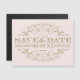 Dekorativa vridningar och blomstrar ram den här elegantens vintage inspirerade bröllop spara datum magnetdesign. rosa av blek med guld färg-systemet som motmedel.