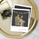 S Spara Strömmen Date party överlägger ditt foto (som om det finns i fotot) på ett kort med fotot-stil. Fotot har ett Zazzle-filter för åldrasens utseende och datuminformationen för bröllop finns i ett handskrivet stil-teckensnitt.
