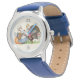 Barnens blåa läderremsa av rostfritt stål med en vintage bild av en hjärtslitande kalkon och en liten Quaker-flicka sitta på en pumpa som håller en skål med kalkonmat och gula blommor. Silver klocka ansikte som tillval. Se matchande fyrkantiga knappar, fyrkantiga tecken och rektangulär dubbla-sidig akrylnyckelkedja. Se hela Thanksgiving Watch-samlingen under kategorin ACCESSORIES i avsnittet HELGDAGAR.