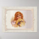 Viktorianskt barn med söt blomma accentuerade hatt. Söt ansikte och krämt smycka hår. Bakgrunden är en mjuk elfenbensdamm. Uppsättning med 12 vintagars underordnade illustrationer av Frances Brundage. En underbar vintage.