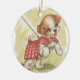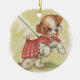 Vintagens valp på utslag julgransprydnad keramik
