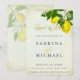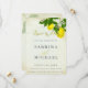 Vintage, rustik bakgrund och vattenfärgscitroner och blommar ge en sommarkänsla för utomhusblocket bröllop