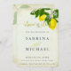 Vintage, rustik bakgrund och vattenfärgscitroner och blommar ge en sommarkänsla för utomhusblocket bröllop