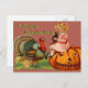 Det här är ett beundransvärt vykort från vintagens Thanksgiving av en liten blond flicka som håller sin kattunge medan sitta på en pumpa med en kalkon bredvid henne. Postkortet lyder "En glad Thanksgiving". Ett vykort som du kan skicka till dina kära den här Thanksgivingen. Ha en välsignad Thanksgiving!
