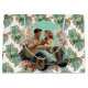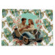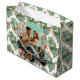 En vacker vintage-stil stor presentpåse utförd i ett blomsterarrangemang med ett vintagepar i en bil.