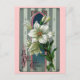 Påskliljar på en randig grå bakgrund med fleur de lis i en vintagevykort från 1909.