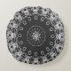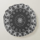 En mörk - grått-/grå färgdekorativ kudde med ett vitsnöretryck.