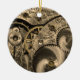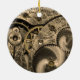 Denna ovanliga och roliga prydnad presenterar ett närbildfoto av det invecklat utrustar, kuggar och svänghjul i arbetena av en vintagerova.