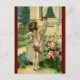Valentin för vintageillustrationvictorianen helgdag för dag avbildar med den pröva cupiden för att ne till och med ett fönster med rosa ros som är främre av det. Denna bedårande cherub är hållande en pil med två hjärtor. Älska hälsning.