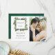 Trendiga färger grönt och vitt vinterbröllop akvarelltallkottar tack fotokort.