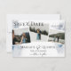 Akvarell tvätt i vinter nyanser av blått med mjukt genomskinlig snöflinga detalj, 3-Foto Bröllop Spara datum kort.