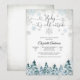 Fira glädjen över en nyanländ med denna eleganta vinterinbjudan till baby shower med snöflingor och en skog av snötäckta granar. Designen blandar lekfull charm med tidlös sofistikation, markerad med stilrena kursiva och serifferade typsnitt. Perfekt för säsongens sammankomster sätter denna inbjudan tonen för en mysig fest samtidigt som dina evenemangsuppgifter lyser igenom. Idealisk för blivande föräldrar som älskar vintertema, det är ett vackert sätt att bjuda in nära och kära att dela i spänningen.