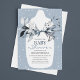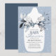 Eleganta vinterblå tema baby shower inbjudningar, med en vit barnflaska med en visning av akvarellblad, ormbunkar och bär i olika nyanser av blått, komplett med en modern inbjudningsmall. Alla typsnitt och bakgrundsfärger kan enkelt ändras genom att klicka på länken anpassa ytterligare efter att du har anpassat.