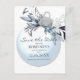 Dessa enkla jul-kort för att spara datumet, med en vit julgran ornament, dekorerad med en blå akvarell bladverk, ormbunke och bär arrangemang och en modern inbjudan small. Alla teckensnitt och bakgrundsfärger kan ändras genom att klicka på länken anpassa ytterligare efter att ha anpassat.