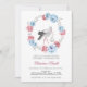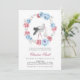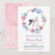 Vinter Blå Och Rosenskära Blommig Bebis Shower Inbjudan. Storken är omgiven av en krans av akvarell peonior. Matchande artiklar tillgängliga.